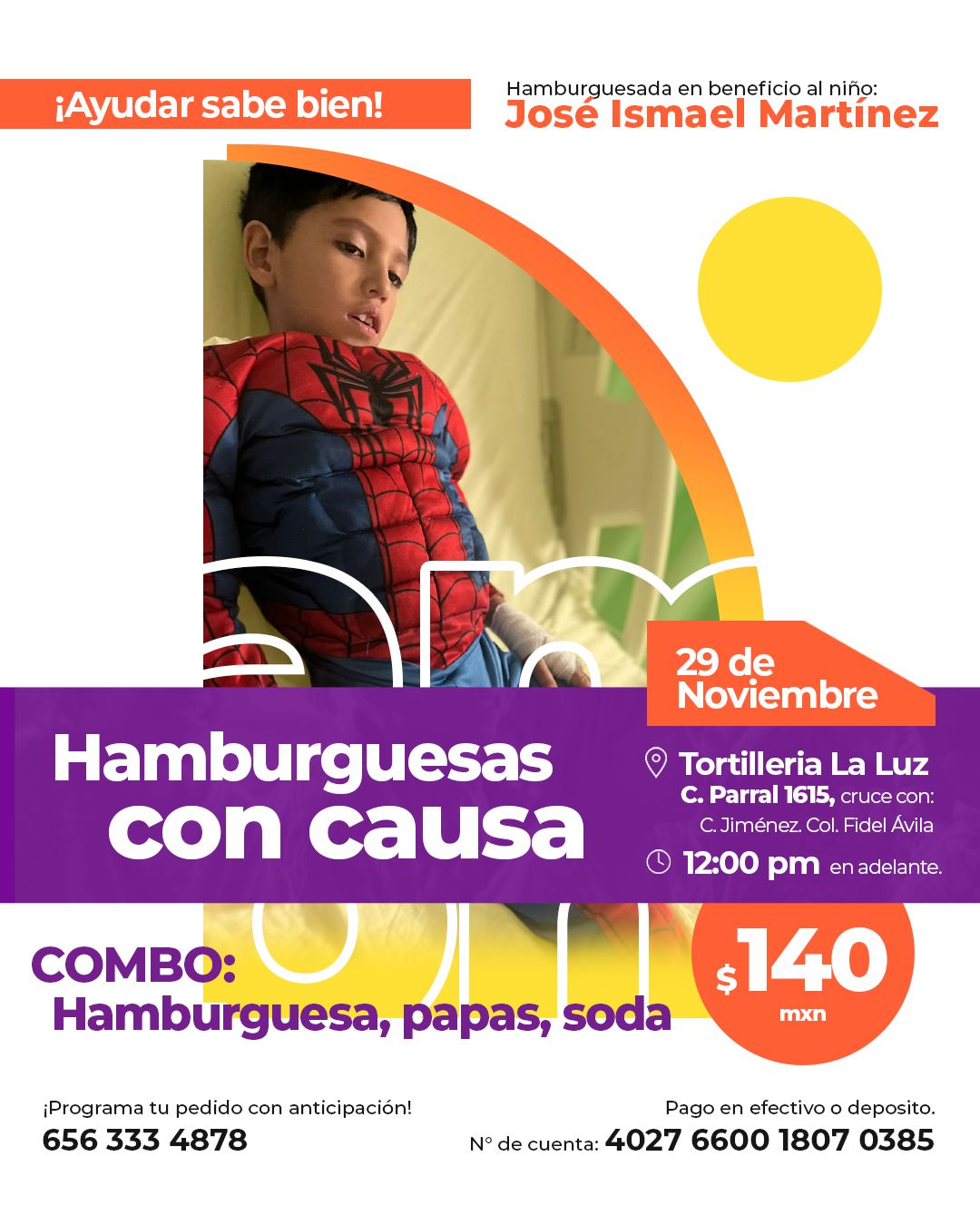 Agentes de la Secretaría de Seguridad Pública Municipal participaron en una hamburguesada organizada para apoyar a José Ismael, niño de 8 años que requiere estudios médicos especializados.