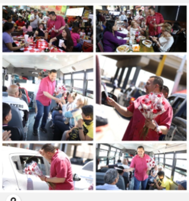 En el marco del Día de las Madres, el Presidente Municipal, Cruz Pérez Cuéllar, visitó varios restaurantes ubicados en distintos puntos de la ciudad, así como un crucero, donde regaló cientos de flores a las mamás.