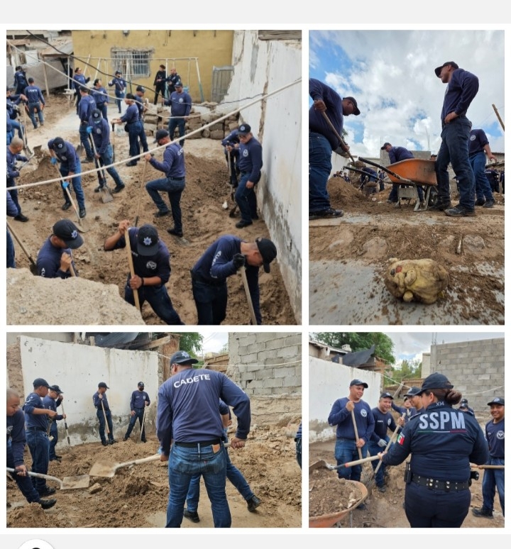 Un grupo de 50 futuros policías son los que llegaron hasta la colonia Francisco Sarabia para ayudar a cuatro familias que perdieron la totalidad de sus muebles y pertenencias.
