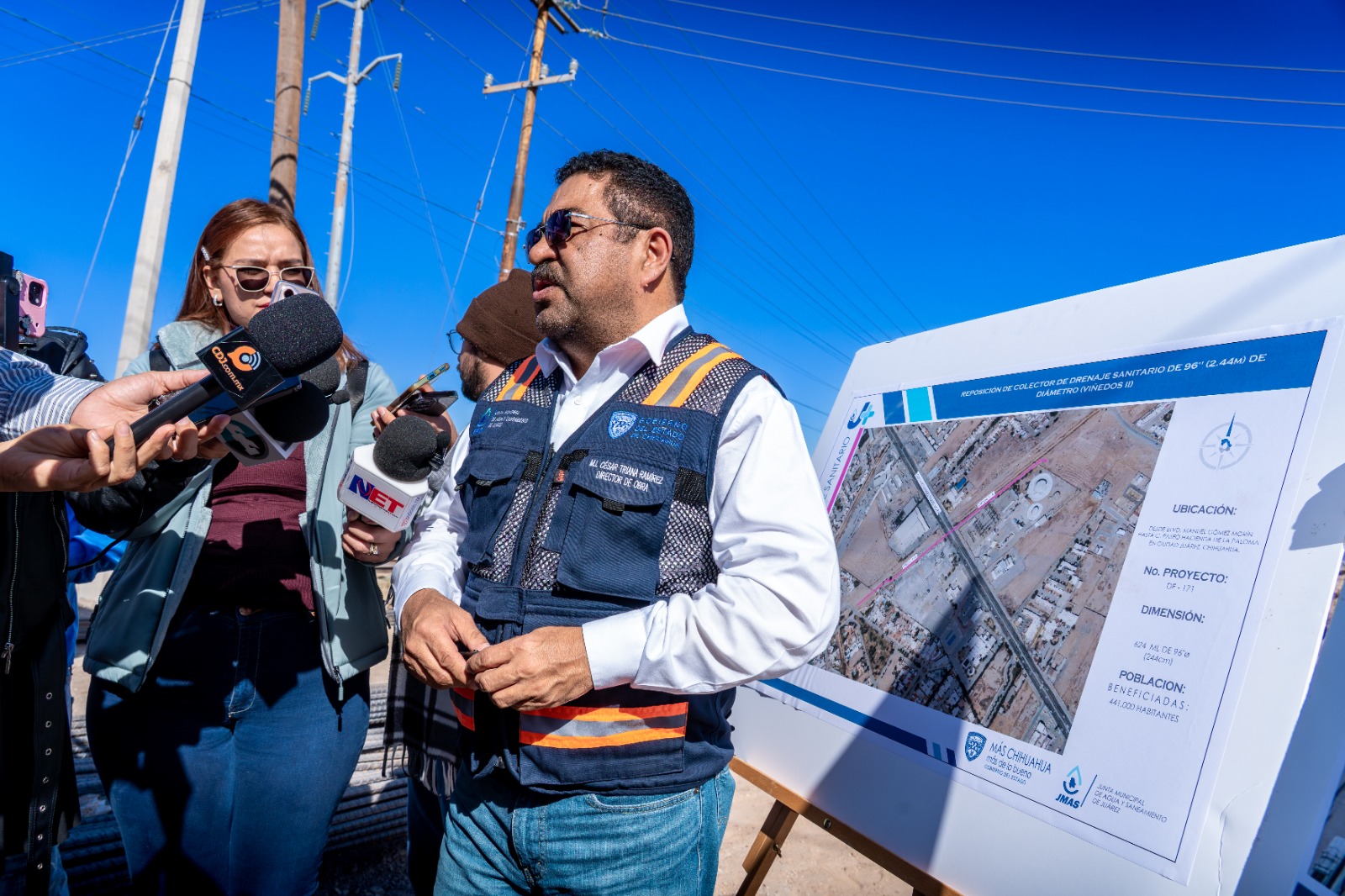 En total, la obra contempla la sustitución de 617 metros de tubería con un diámetro de 2.44 metros, con una inversión de 61 millones de pesos, beneficiando directamente a 441 mil juarenses.