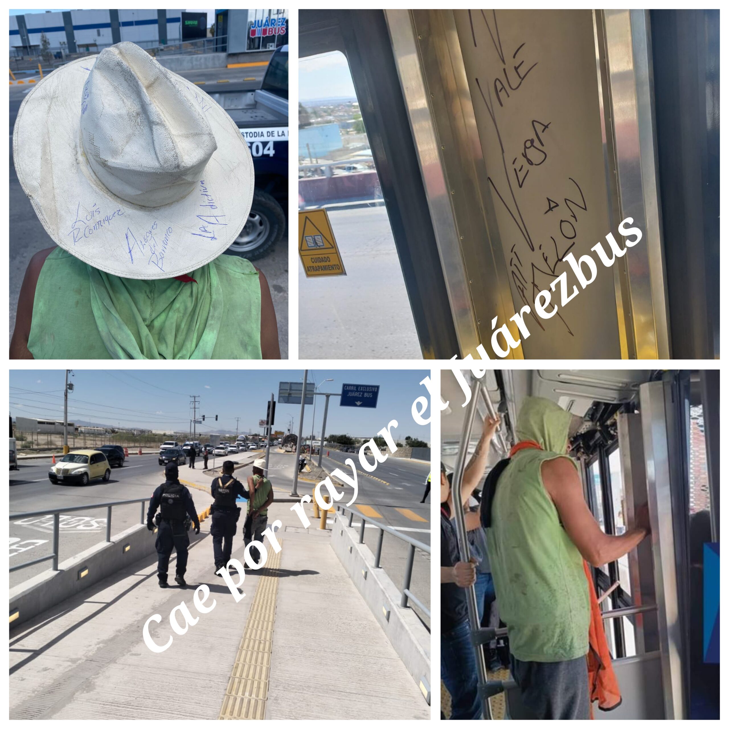 Ciudad Juárez.- Un pasajero del BRT fue detenido por pintarrajear una de las unidades nuevas que está semana comenzaron a brindar servicio.