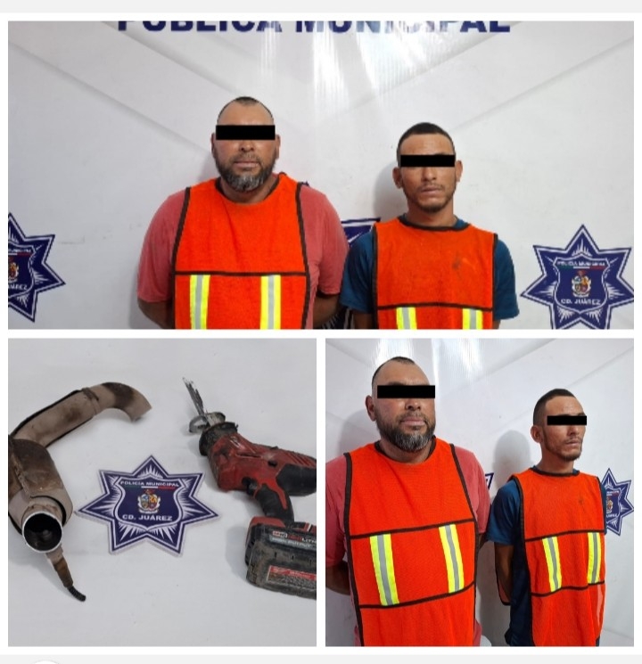 A 20 de julio de 2025.- Elementos de la Secretaría de Seguridad Pública Municipal arrestaron a Juan Pedro A. R. y a Christian B. R., por su presunta responsabilidad en la comisión del delito de robo de autopartes.