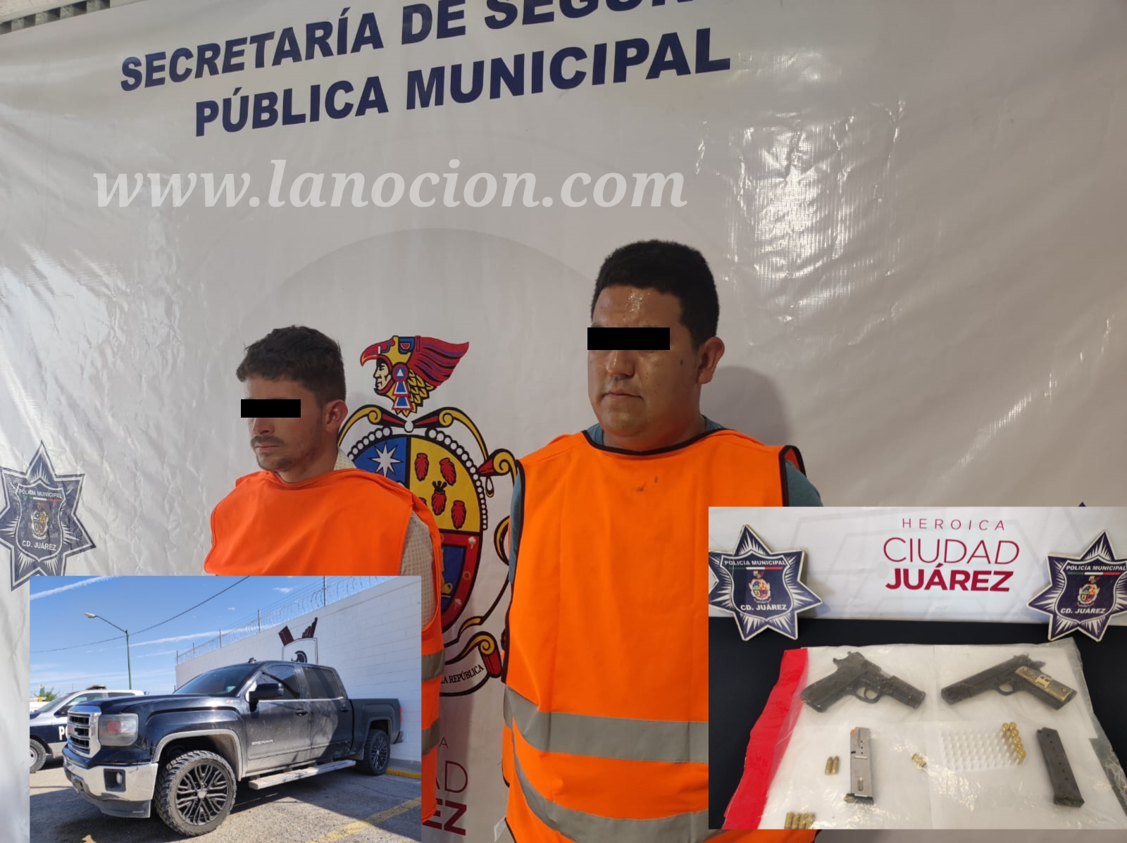 A 03 de agosto de 2023.- Elementos de la Secretaría de Seguridad Pública Municipal arrestaron a José Enrique O. V. y Edgar A. E., por su presunta responsabilidad en la comisión de delitos contra la ley federal de armas de fuego y explosivos.