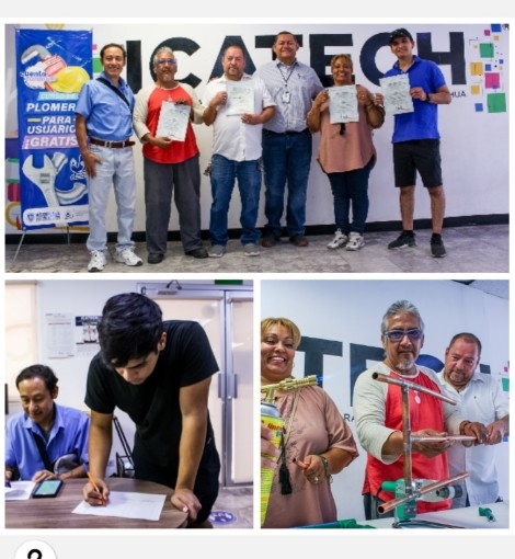 Entrega la Junta de Agua y Saneamiento de Juárez, reconocimientos a diez usuarios que concluyeron el curso de plomería impartido por el Instituto de Capacitación para el Trabajo del Estado de Chihuahua (ICATECH), con el propósito de que cada vez más personas se sumen al cuidado y ahorro del agua.