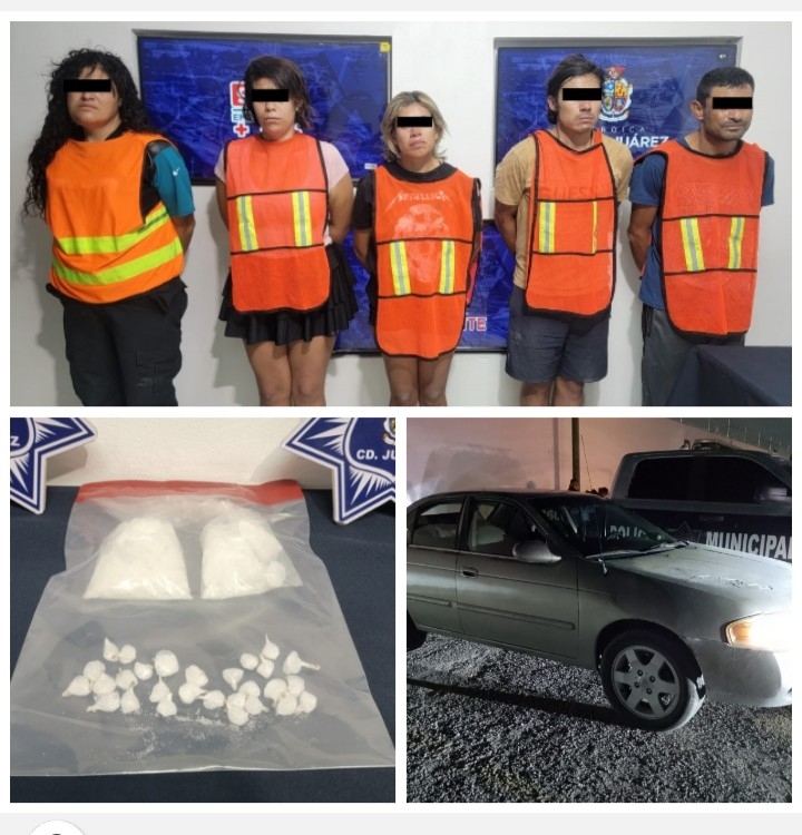 A 07 de octubre de 2025.- Elementos de la Secretaría de Seguridad Pública Municipal, adscritos al Distrito Sur detuvieron a Judith Berenice V. G., Lissette M.R., Fernanda Concepción A. G., Ever T. S. y Hugo César B. L., por su presunta responsabilidad en la comisión de delitos contra la salud.