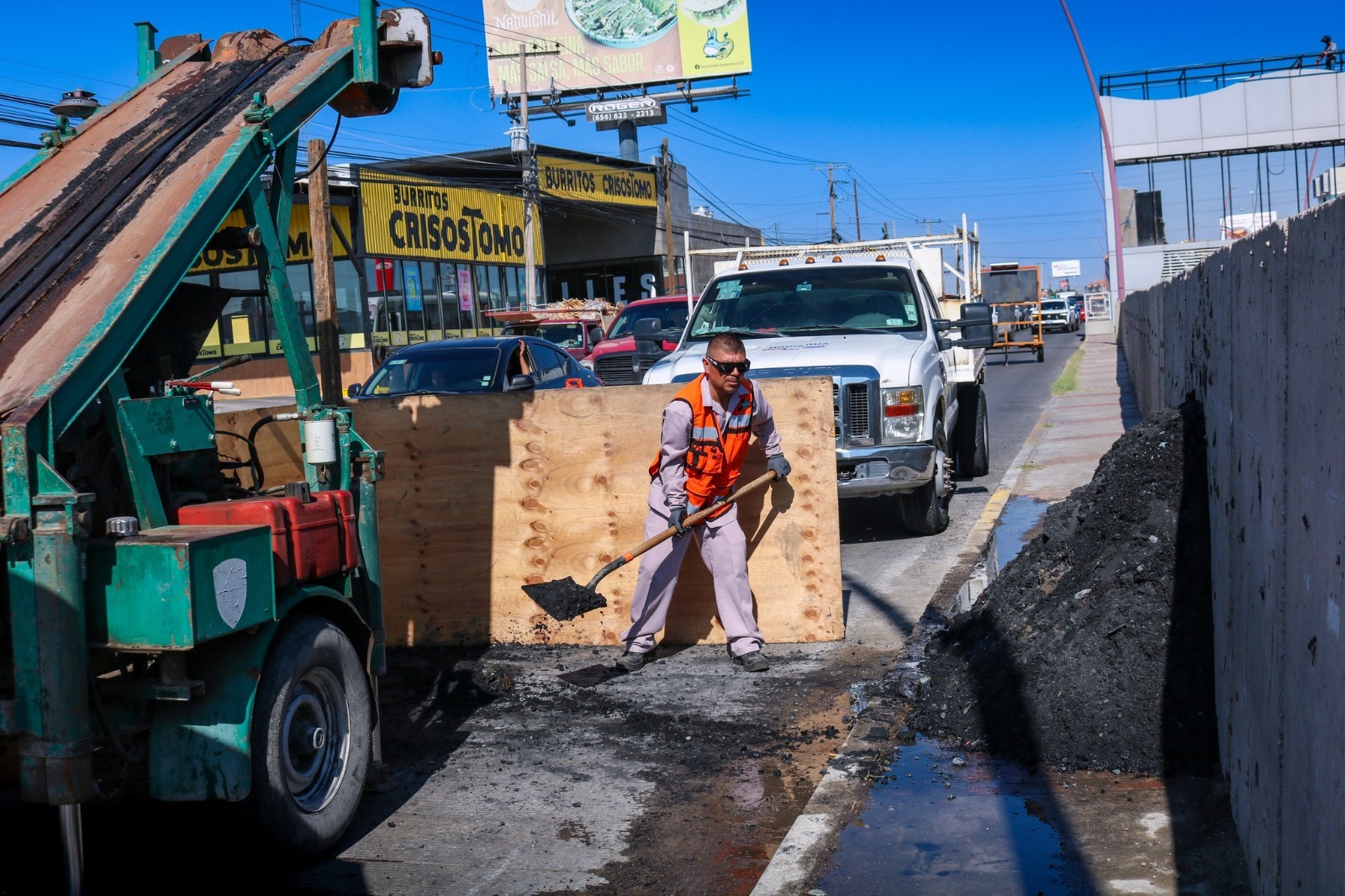 La Junta de Agua y Saneamiento de Juárez agradece la comprensión y paciencia de los automovilistas que transitan por la zona, reiterando que estos trabajos se realizan para evitar afectaciones al sistema de drenaje.