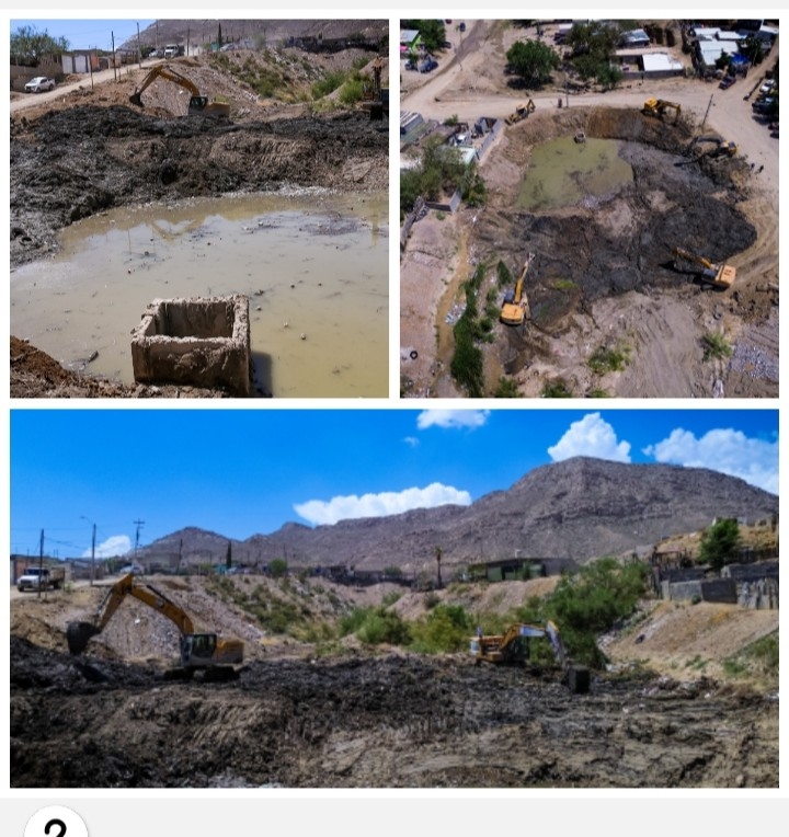 Con el uso de maquinaria pesada y un avance cercano al 70 por ciento, la Junta de Agua y Saneamiento de Juárez continúa la limpieza del dique ubicado en la colonia Plutarco Elías Calles, al norponiente de la ciudad.
