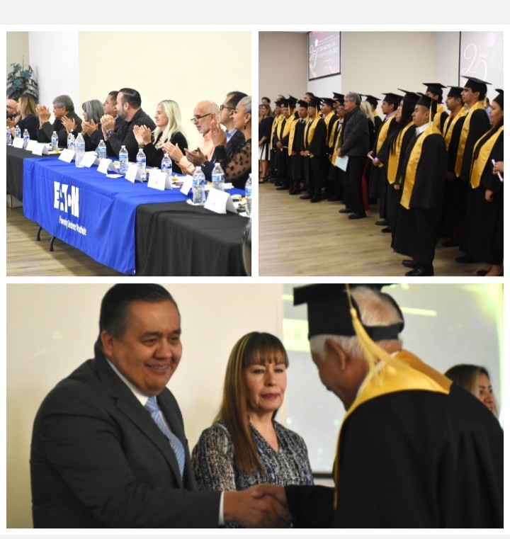 En las instalaciones de Index Juárez se llevó a cabo la ceremonia de graduación de trabajadoras y trabajadores de la empresa Eaton, quienes concluyeron sus estudios a través del Instituto Chihuahuense de Educación para los Adultos (Ichea) y el Subsistema de Preparatoria Abierta y Telebachillerato (SPAyT).