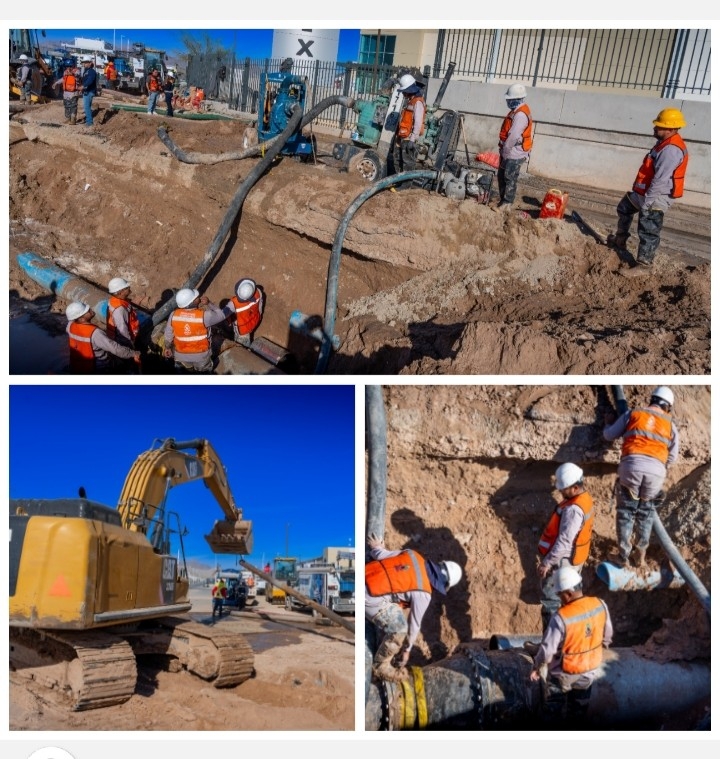 La Junta de Agua y Saneamiento de Juárez (J+) continua con los trabajos de reparación en una línea de conducción de agua potable de 30 pulgadas sobre el bulevar Talamás Camandari.