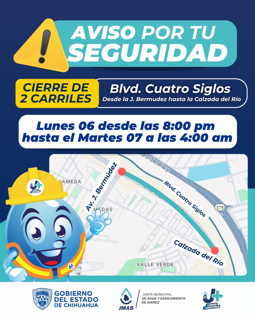 La J+ en acción, realiza estas obras para garantizar la seguridad y estabilidad de esta transitada vialidad, en beneficio de los juarenses.