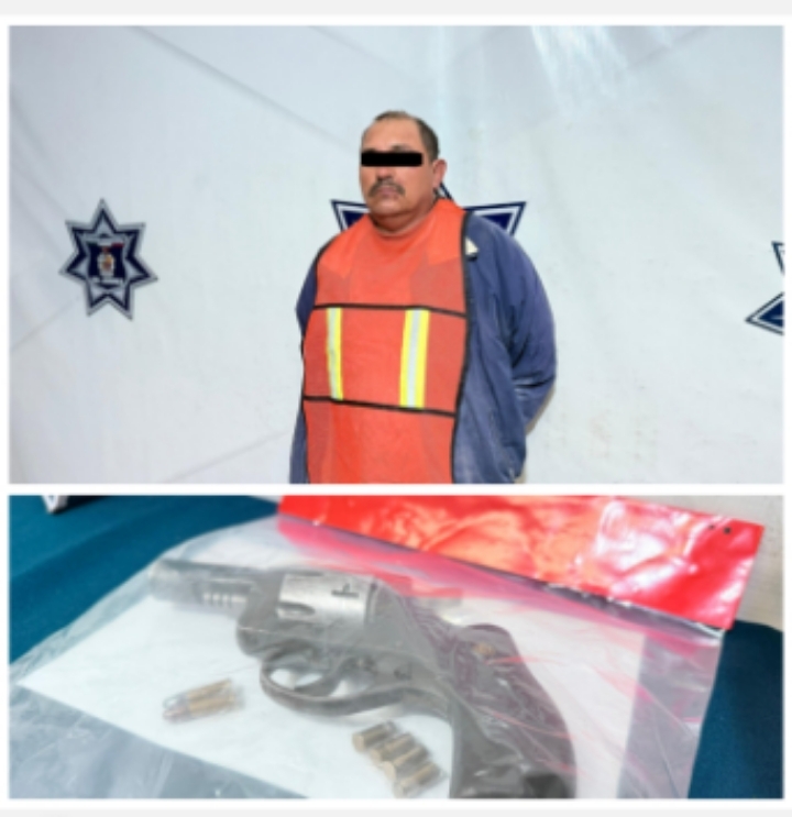 Con los datos obtenidos realizaron la detención de quien dijo llamarse Adrián P. C. de 52 años, mismo a quien se le aseguró un arma de fuego tipo revólver calibre 22, con su cilindro abastecido con dos cartuchos útiles y cuatro percutidos.