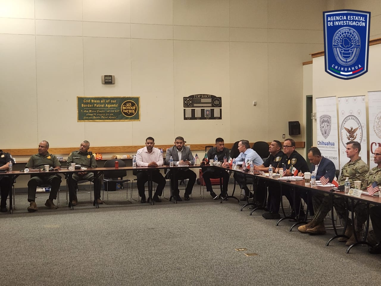 Me permito informar que el día de ayer 11 de septiembre del presente año a las 11:00hrs. se llevó a cabo una reunión Binacional, la cual tuvo lugar en la estación de la Patrulla Fronteriza de El Paso, TX. El Paso Border Patrol Station, 9201 Gateway South El Paso, Texas 79924. donde estuvieron presente el Coordinador General de la Agencia Estatal de Investigaciones; Pedro Román Oseguera Cervantes, Fiscal de operaciones estratégicas Guillermo Arturo Zuany Portillo, Reunión la cual tuvo como fin presentar acuerdos de los temas de atención de la reunión anterior, siendo los siguientes: