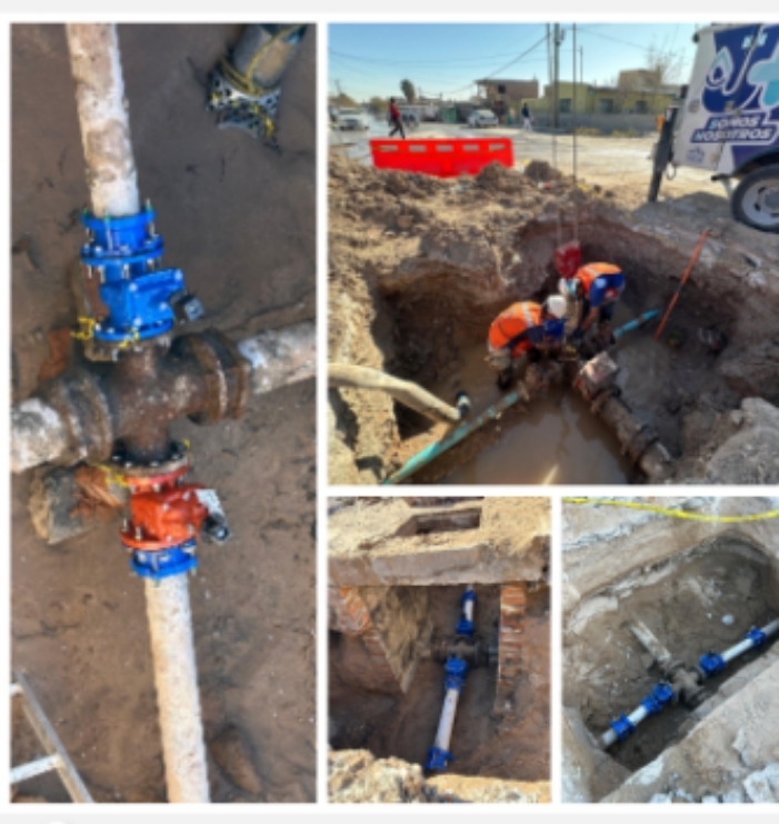 En un tiempo récord de 5 horas y media, cuadrillas de Agua Potable de la J+ realizaron el cambio de 17 válvulas que ya habían cumplido su vida útil y que se ubican en diferentes cruces del bulevar Óscar Flores y la calle C.V., en el sector de la colonia Lomas de San José, donde se beneficia a más de 2 mil familias.