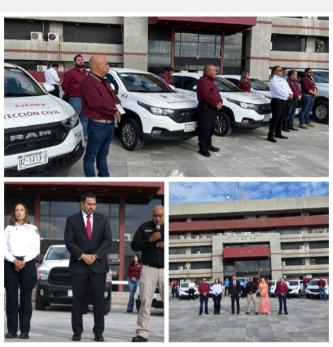Ciudad Juárez. – Alcalde realizó la entrega de 9 vehículos a la Dirección General de Protección Civil, unidades que se utilizarán por el personal de los departamentos de Normatividad y Trámites y de Administración de Riesgos.