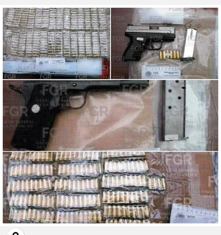 Al momento de la detención, la Policía Federal Ministerial aseguró cuatro armas de fuego tipo pistola, 739 cartuchos, 11 cargadores, 46 envoltorios que en total contenían un kilo134 gramos 56 miligramos de cocaína; 19 envoltorios con 469 gramos 37 miligramos de heroína y 33 envoltorios que contenían un kilo 333 gramos cinco miligramos de metanfetamina y una báscula gramera, entre otros objetos del delito.