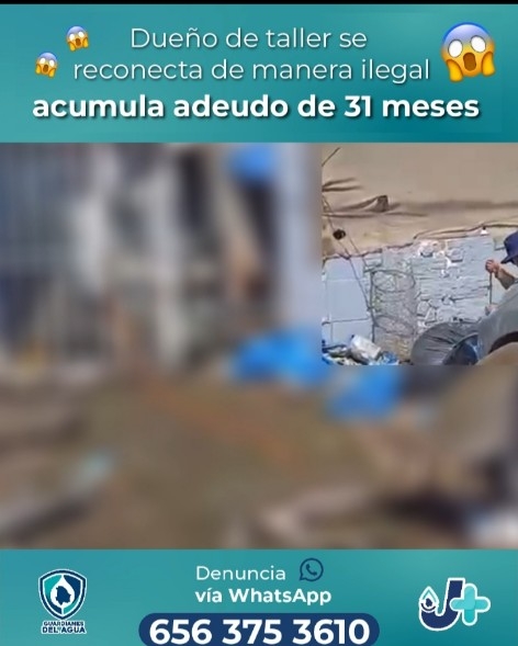 En atención a una denuncia ciudadana, los Guardianes del Agua de la J+ descubrieron que un taller mecánico que operaba en la vía pública en la colonia Infonavit Jarudo, estaba reconectado a la red de manera ilegal.