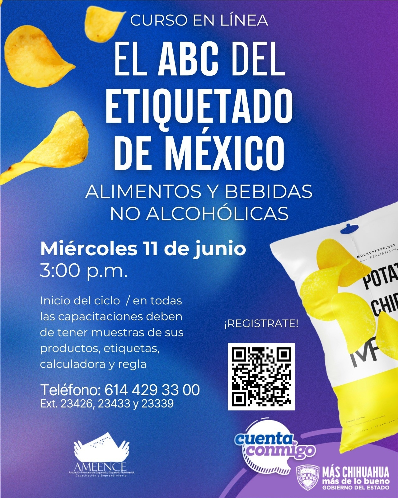 El curso “Etiquetado en México” está programado para el miércoles 18 de junio de 2025 a las 15:00 horas, abordará a mayor profundidad la normatividad vigente, así como su aplicación práctica en productos alimenticios.