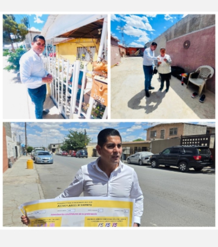 Ciudad Juárez.- Casa por casa José Luis Contreras, candidato número 15 a juez de Distrito recorre el poniente de la ciudad para pedir el voto a los ciudadanos y al mismo tiempo enseñarles a votar el 1 de junio en la elección del Poder Judicial.