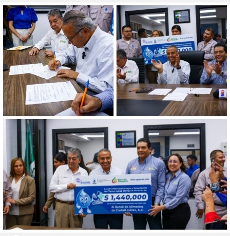 Con el objetivo de apoyar a las familias que más lo necesitan, la Junta Municipal de Agua y Saneamiento de Juárez, entregó un donativo de 1 millón 440 mil pesos al Banco de Alimentos A.C., además de firmar un convenio de colaboración con esta institución.