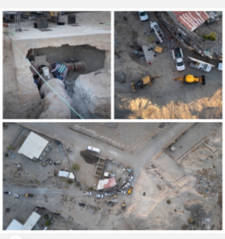 Según informó la Dirección de Operación de la Junta de Agua y Saneamiento de Juárez, la emergencia se presentó en una tubería de 36 pulgadas (91 centímetros) de diámetro, que abastece el Tanque Renovación.