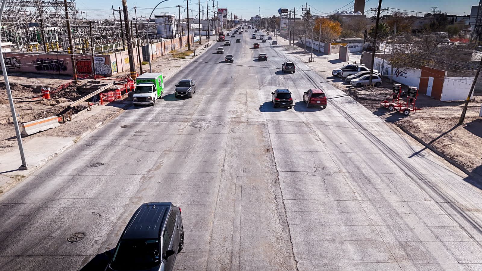La Junta de Agua y Saneamiento de Juárez informa que los trabajos de pavimentación de concreto en la vialidad del Blvd. Gómez Morín han sido terminados, permitiéndole a los ciudadanos transitar libremente.