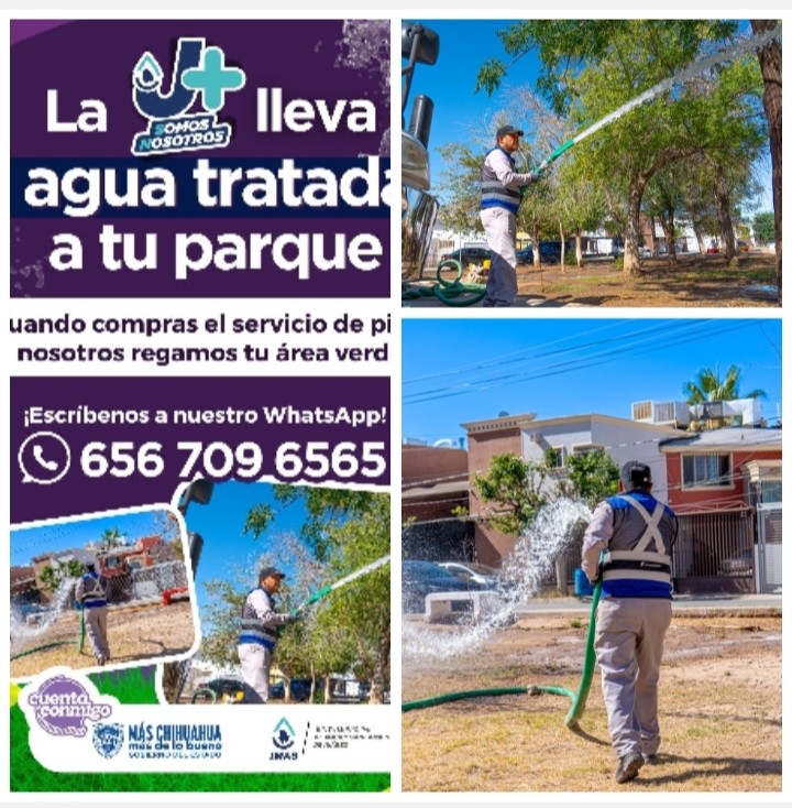 Con la finalidad de preservar el agua potable para el consumo humano, la Junta de Agua y Saneamiento de Juárez promueve que el riego de parques y áreas verdes se haga con agua tratada, para lo cual se realiza su venta en pipas a través del área de Comercialización de Agua Tratada.