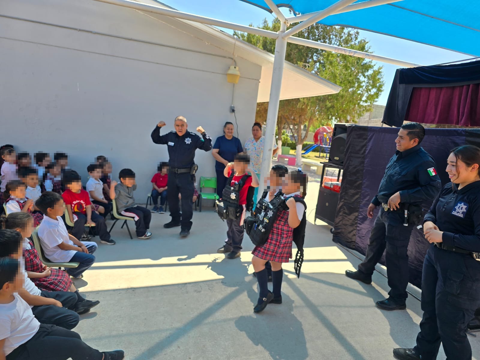 A 14 de mayo de 2025-. Dentro del marco de las acciones de prevención social y apoyo ciudadano, personal de la Secretaría de Seguridad Pública Municipal adscritos a la Dirección de Prevención Social, llevaron a cabo una función del “Teatrino” al Jardín de Niños Club Sertoma.