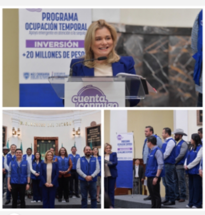 La gobernadora Maru Campos anunció este miércoles la ampliación del Programa de Ocupación Temporal, con la finalidad de apoyar de manera emergente a quienes enfrenten dificultades para subsistir, derivadas de la falta de lluvias en la zona centro-sur de la entidad.