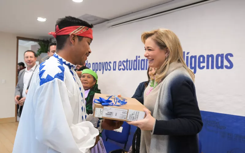Los apoyos incluyeron mochilas con kits educativos, 40 laptops e insumos como parte del Programa Incentivos Económicos a Estudiantes Indígenas para su Profesionalización, al cual se ha destinado una inversión de 13.5 millones de pesos.