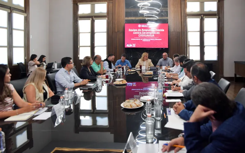 En una sesión de trabajo celebrada en Palacio de Gobierno, la gobernadora Maru Campos y el subsecretario de Políticas de Salud y Bienestar Poblacional del Gobierno Federal, Ramiro López Elizalde, dieron seguimiento a la estrategia conjunta de vacunación contra el sarampión que se implementa en el estado de Chihuahua.