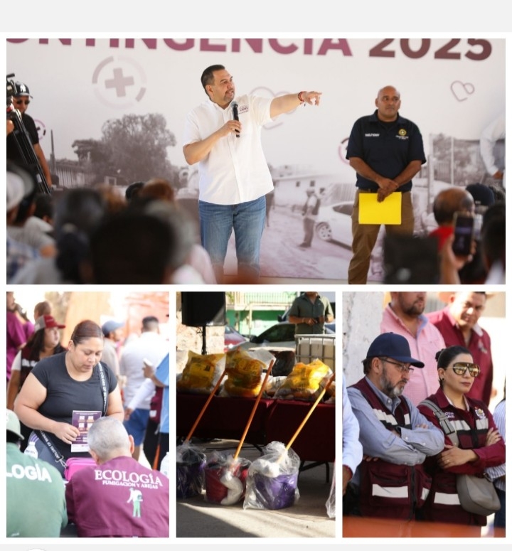 Previo a la entrega de material, el director general de Protección Civil, Sergio Rodríguez, presentó un resumen de todo el trabajo que se ha desarrollado en el poniente de la ciudad desde el 25 de junio a través de las diferentes dependencias municipales.