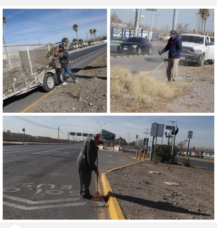 Cuadrillas de la Dirección de Parques y Jardines llevaron a cabo labores de mantenimiento en el camellóm central de la Panamericana, como parte de las acciones permanentes para conservar en buenas condiciones los espacios públicos de esta frontera.