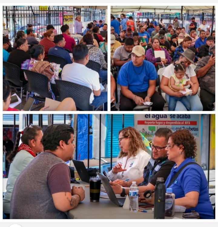 Desde muy temprano, se empezó a ver la fila de personas que esperaban la llegada del personal de la Junta de Agua y Saneamiento de Juárez, en el atrio de Catedral, en el corazón de Ciudad Juárez.
