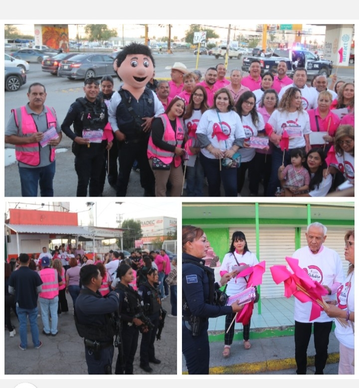 La actividad se llevó a cabo en el cruce de la avenida Tecnológico y el bulevar Manuel Gómez Morín, en la colonia El Futuro, donde los agentes municipales contribuyeron a distribuir material informativo a automovilistas y peatones, con el propósito de fomentar la conciencia sobre la importancia de la prevención y detección oportuna del cáncer.