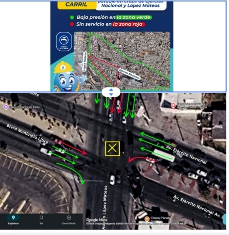 La ingeniera Paola Moreno, directora de Operaciones de la JMAS, explicó que desde el lunes se detectó la falta de suministro en el sector. Tras realizar recorridos de inspección, se localizó una fuga en la línea principal de cuatro pulgadas. No se presentó brote visible de agua en el pavimento, ya que el líquido se estaba filtrando hacia el colector ubicado en la avenida López Mateos.