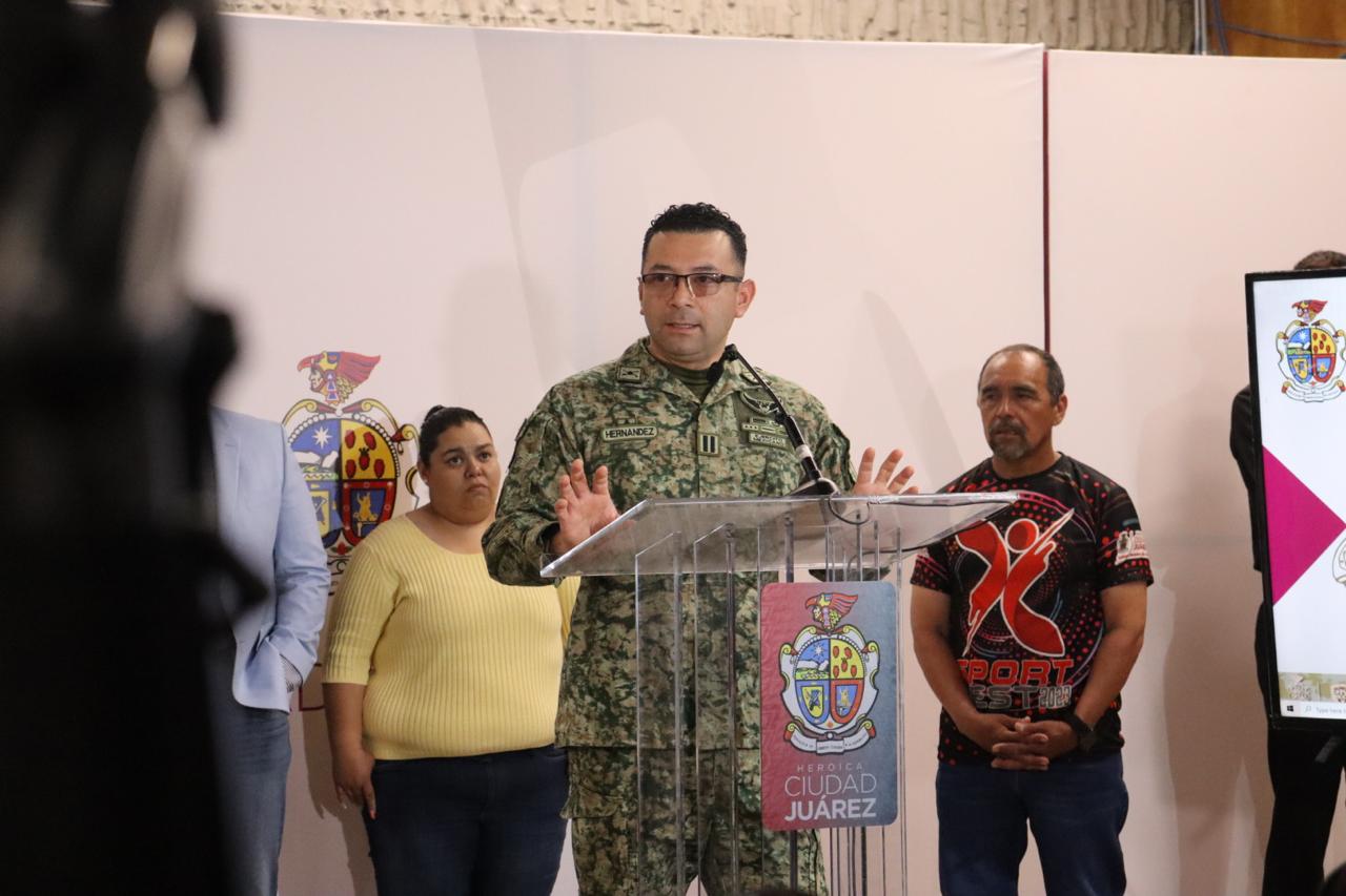 En la conferencia estuvieron el director de Instituto Municipal del Deporte y Cultura Física de Juárez, Juan Escalante; de la Quinta Zona Militar, el Teniente José Luis Lemus Hernández; Sarahí de los Santos coordinadora del Deporte Popular IMDEJ y el coordinador del Circuito Atlético Pedestre, David Serna.