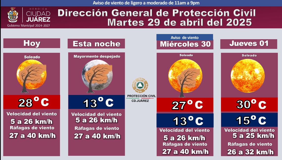 La Dirección General de Protección Civil emitió el pronóstico del clima correspondiente a este martes 29 de abril.