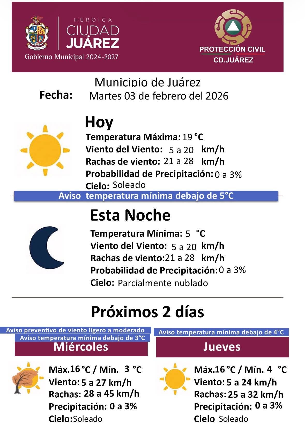 Buenos días, Pronóstico Meteorológico para el 03 de febrero de 2026🌤️