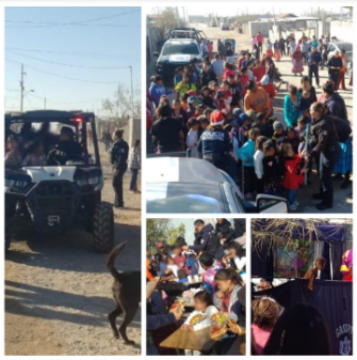 Con alimentos, dulces, piñatas y regalos, los agentes se dieron cita en las instalaciones de dicho plantel educativo ubicado en el cruce de las calles Lucero y Raymundo López, en la colonia Kilómetro 29, en donde emocionados los pequeños esperaban a las botargas de los personajes característicos de la policía municipal.