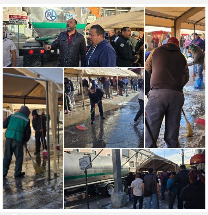 Ciudad Juárez. – Secretario del Ayuntamiento, Hector Ortiz Orpinel encabezo el programa de limpieza en el cebro de la ciudad en conjunto con el Director de Regulación Comercial Oscar Guevara, el titular de Protección Civil, Sergio Rodriguez y Gibran Solis de Limpia en el operativo de limpieza en zona centro de Juárez. Esta es la sexta ocasión que realizan la convocatoria para limpiar las calles y espacios destinados para la venta de alimentos y diversa mercancía, En esta ocasión las labores de limpieza se realizaron en la calle la Paz cruce con Mariscal.