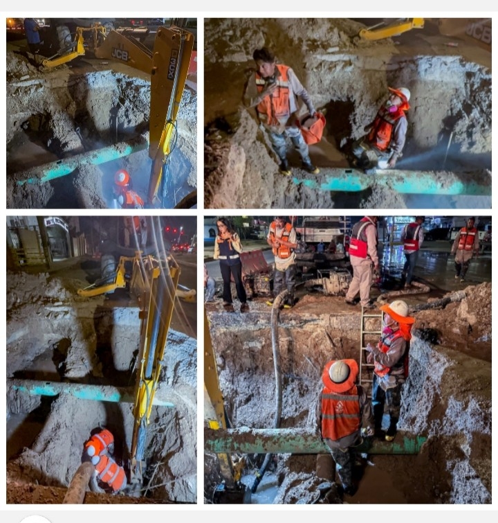 Las acciones de las cuadrillas del departamento de agua potable se extendieron hasta las 12 de la noche de este miércoles, para instalar un carrete de 10 pulgadas para resolver la fuga, sin que se registrara suspensión en el suministro de agua potable en la zona.