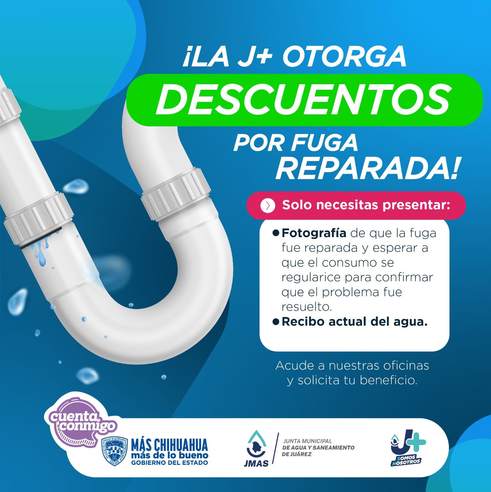 Conscientes de que en muchas ocasiones no es fácil detectar fugas en las viviendas, la Junta de Agua y Saneamiento de Juárez ofrece descuentos por fuga reparada.