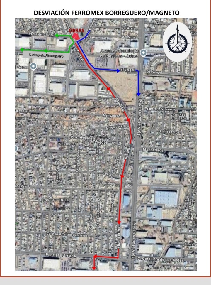 Debido a los trabajos que estará realizando Ferrocarriles de México (FERROMEX), la Coordinación General de Seguridad Vial anuncia que será cerrada la circulación en el Parque Las Industrias y calle Gradma, así como la calle Magneto.