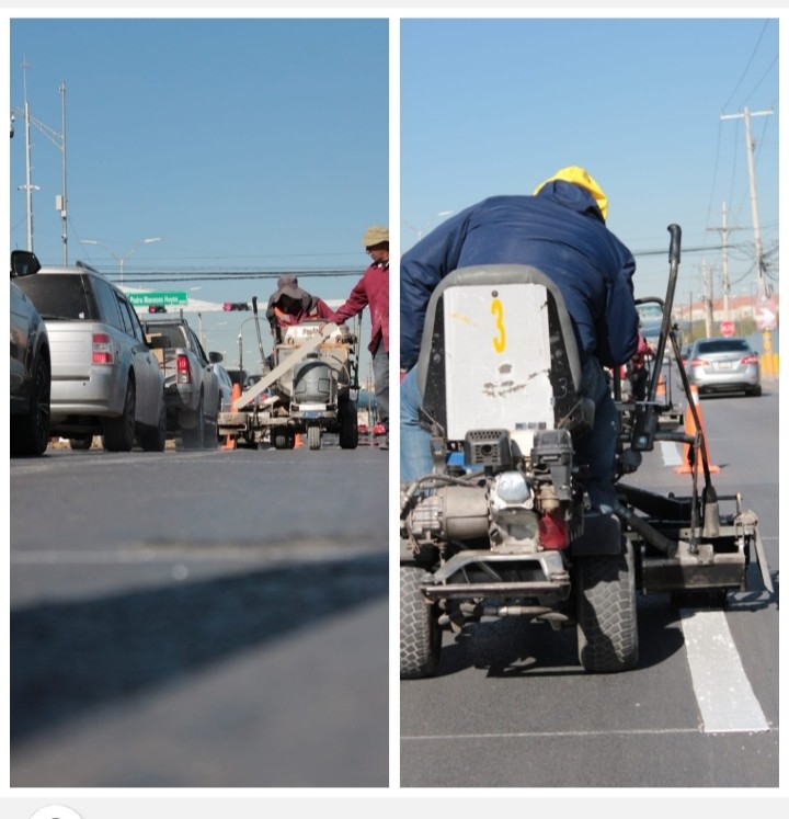 La Coordinación General de Seguridad Vial realizó trabajos de pintura para la división de carriles sobre la avenida Tecnológico, en el tramo comprendido desde calle Loma Azul hasta la Pedro Meneses Hoyos.
