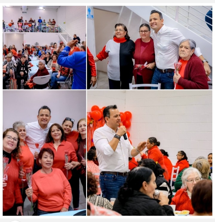H. Ciudad de Chihuahua, Chih., a 14 de febrero de 2026.- El alcalde Marco Bonilla, les brindó una sorpresa a adultos mayores de los Clubes del Abuelo: Grandes esperanzas, Tesoro de la experiencia y San Jorge; con mariachi para celebrar el Día de San Valentín y pasar una tarde de convivencia y amor con música, flores, paletas de corazón y un abrazo para demostrar el cariño que se le tiene a todas y todos.