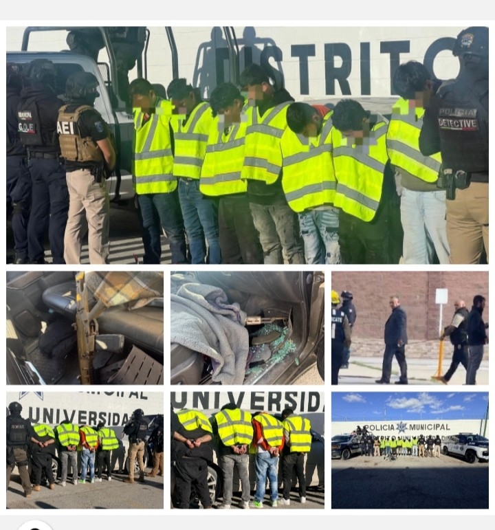 A 08 de enero del 2026.- Elementos de la Secretaría de Seguridad Pública Municipal arrestaron a siete presuntos implicados en el ataque a policías estatales.