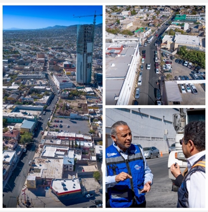 El director ejecutivo de la Junta de Agua y Saneamiento de Juárez, Sergio Nevárez, supervisó los trabajos finales de la obra integral realizada en la calle Lerdo.